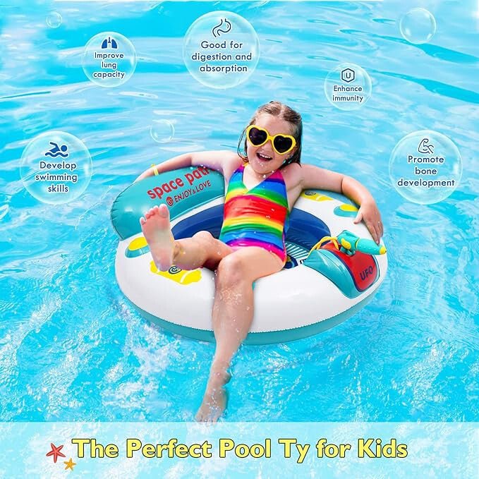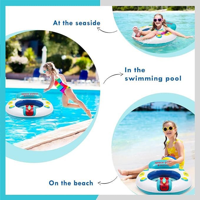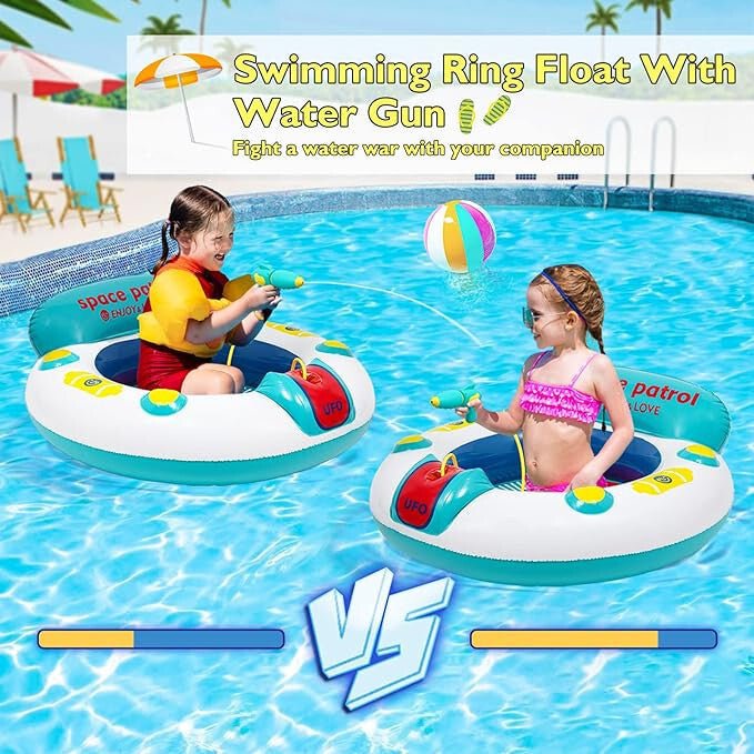 - Fedezze fel, a gyerekek kedvenc nyári játékát – a felfújható UFO dizájnú úszógumit, beépített vízipisztollyal, amely, garantáltan feldobja, a vízi kalandokat, és biztonságos szórakozást nyújt a kicsiknek!