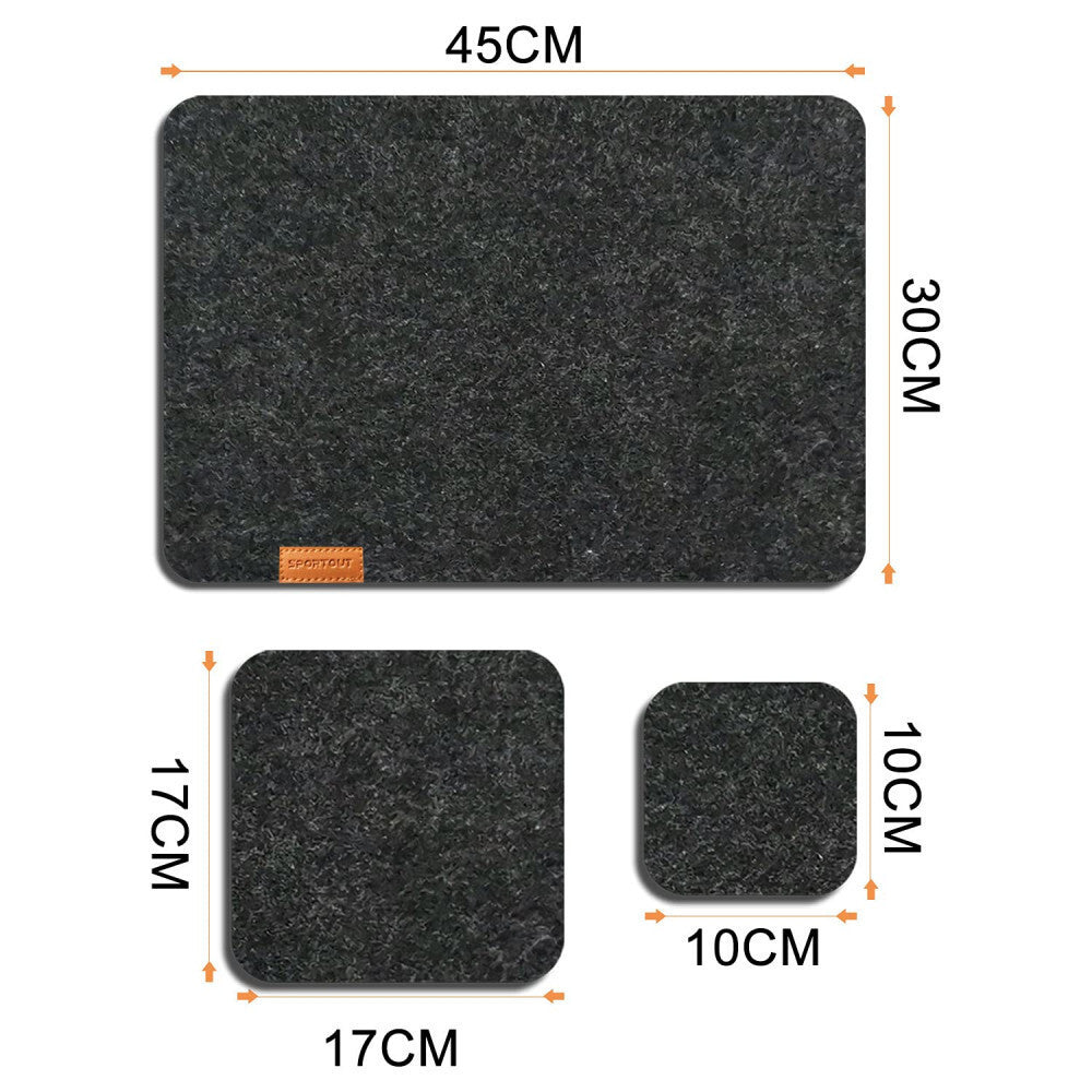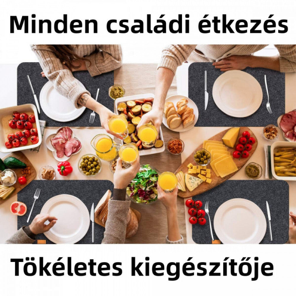 - Dobd fel az étkezéseid hangulatát a SportOut prémium minőségű étkező alátétszettjével, amely egyszerre elegáns és praktikus. A hőálló, vízlepergető és csúszásmentes filc anyag megbízható védelmet nyújt az asztalnak a hő, a foltok és a karcolások ellen, miközben stabil tartást biztosít a tányéroknak és poharaknak.
