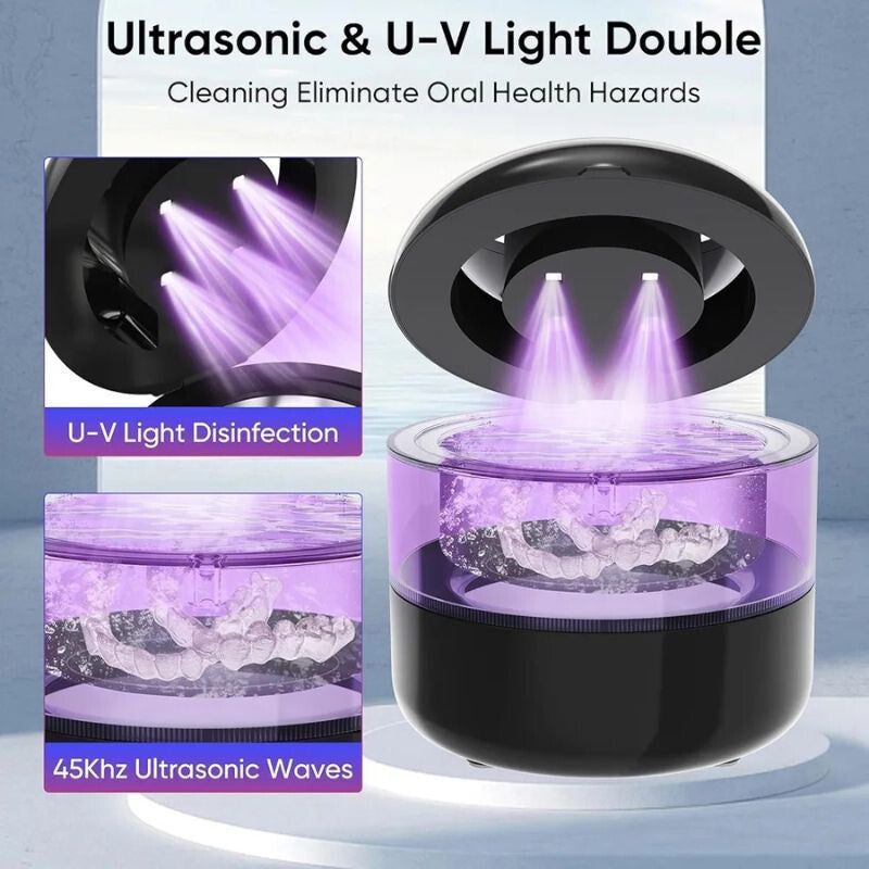 - Az automata ultrahangos és UV fertőtlenítő tisztítókészülék hatékony és kíméletes megoldást nyújt fogsorok, láthatatlan fogszabályzók, harapásemelők, ékszerek és egyéb apró tárgyak alapos tisztításához. A 45 kHz-es ultrahangos technológia és a UV-fényes fertőtlenítés kombinációja segít eltávolítani a szennyeződéseket, lerakódásokat és baktériumokat nehezen hozzáférhető helyekről is.