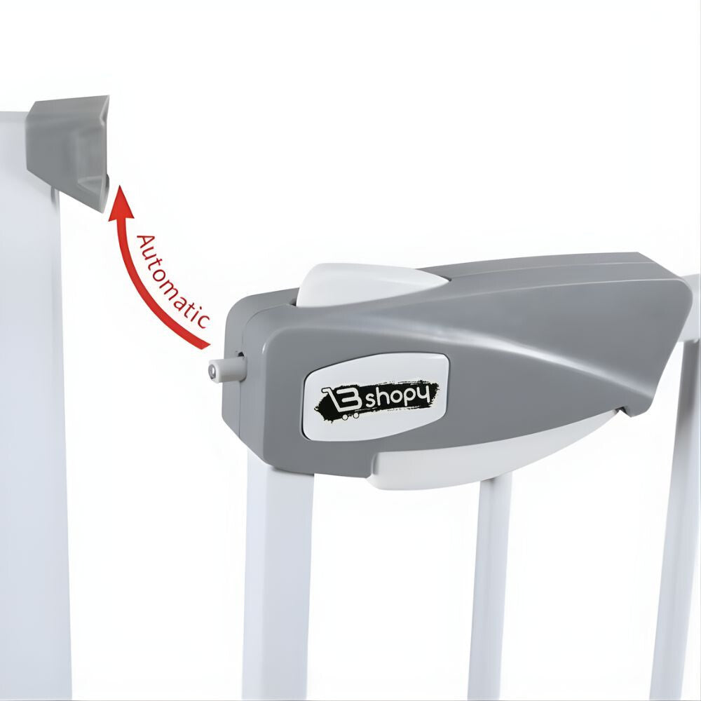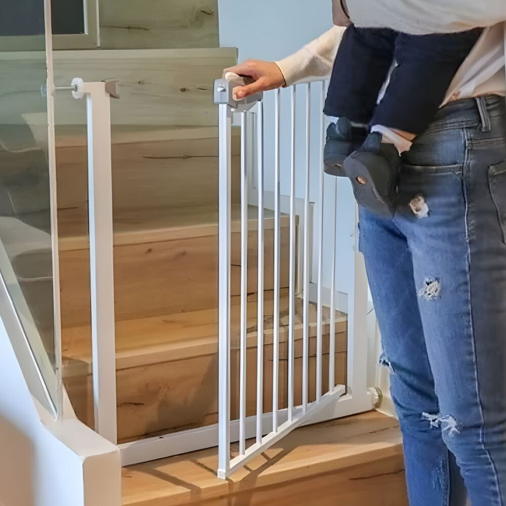 A kapu megakadályozza, hogy a gyermek veszélyes területre kerüljön, például lépcsők tetejére vagy aljára. A stabil fém szerkezet és a reteszelőrendszer garantálja a biztonságos használatot. - Dupla biztonsági zár