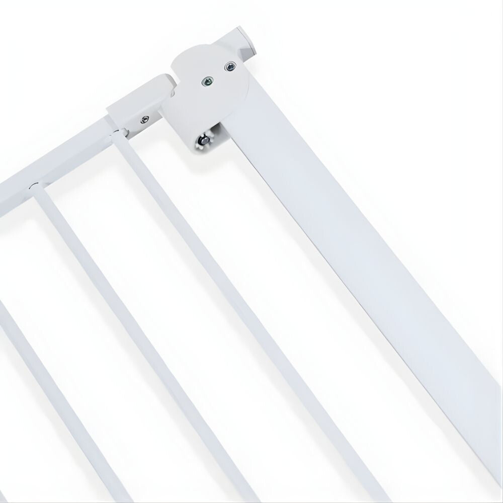 A biztonsági kapu kiváló minőségű fémből és erős műanyag elemekből készült, fényes fehér bevonattal, amely jól illik bármilyen otthoni környezetbe. - Méretek