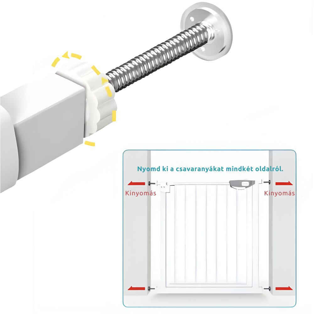 - Univerzális Gyerekbiztonsági Kapu – Strapabíró Fém Kivitel, Nyomásos Rögzítés 77-82cm