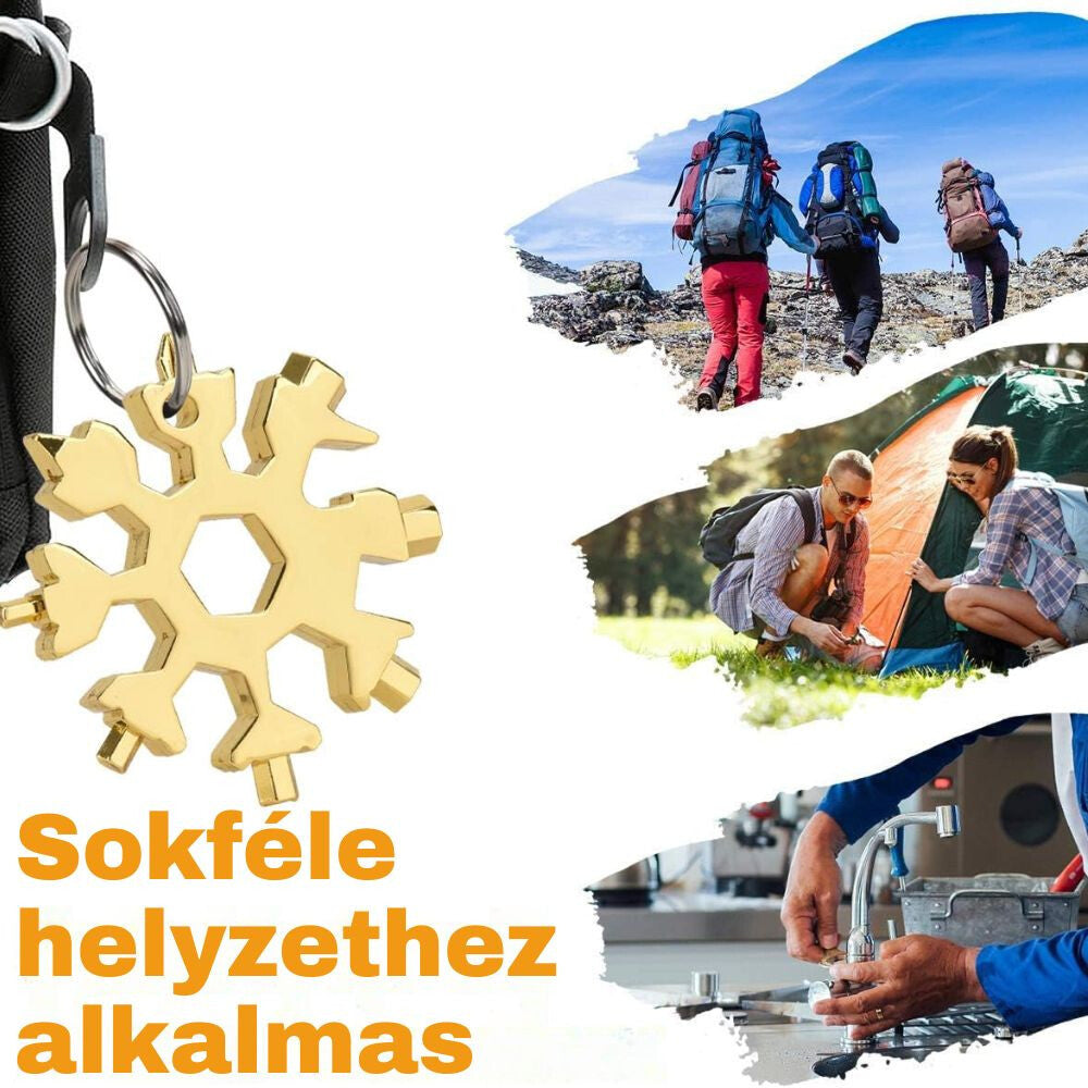 18 az 1-ben Hópehely Multiszerszám – Rozsdamentes Acél Kulcstartó