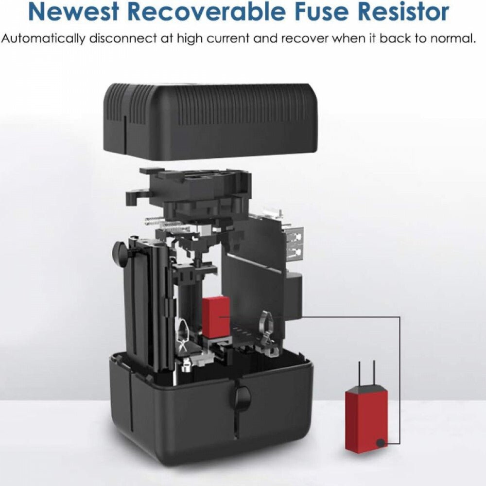 Az univerzális, önvisszaállító biztosítékkal ellátott utazási adapter tökéletes megoldás a biztonságos és kényelmes töltéshez világszerte, akár 180 országban – ideális választás minden utazónak.