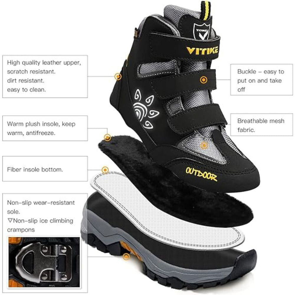 - Puha és kiváló minőségű műbőr felsőrésszel és hálós anyaggal a tartósság és a kényelem érdekében. Víz-, szél- és hóálló cipő.