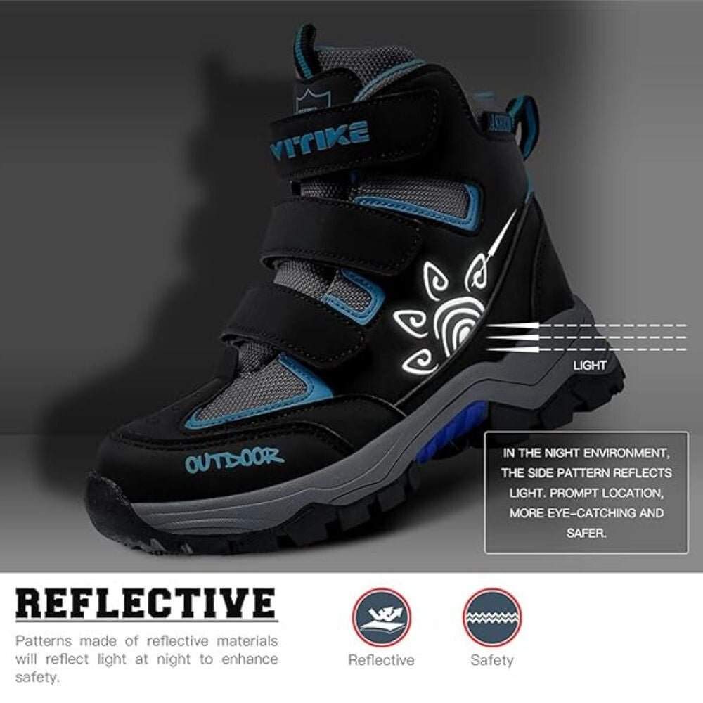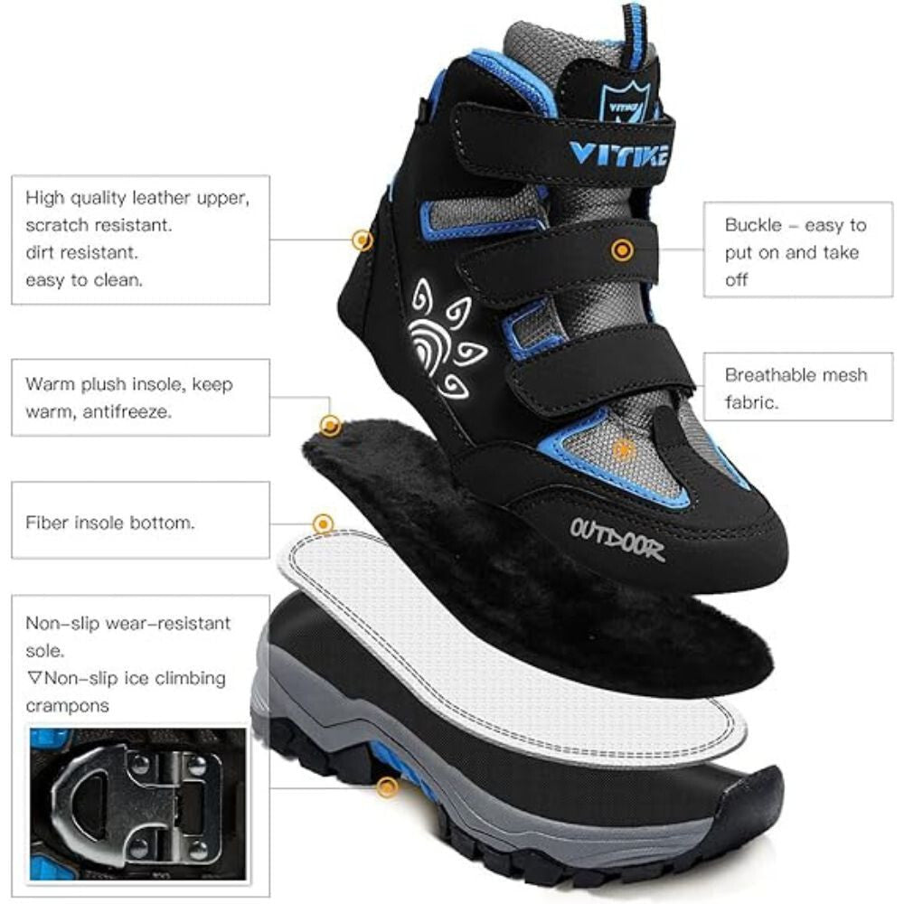 Puha és kiváló minőségű műbőr felsőrésszel és hálós anyaggal a tartósság és a kényelem érdekében. Víz- szél- és hóálló cipő.
