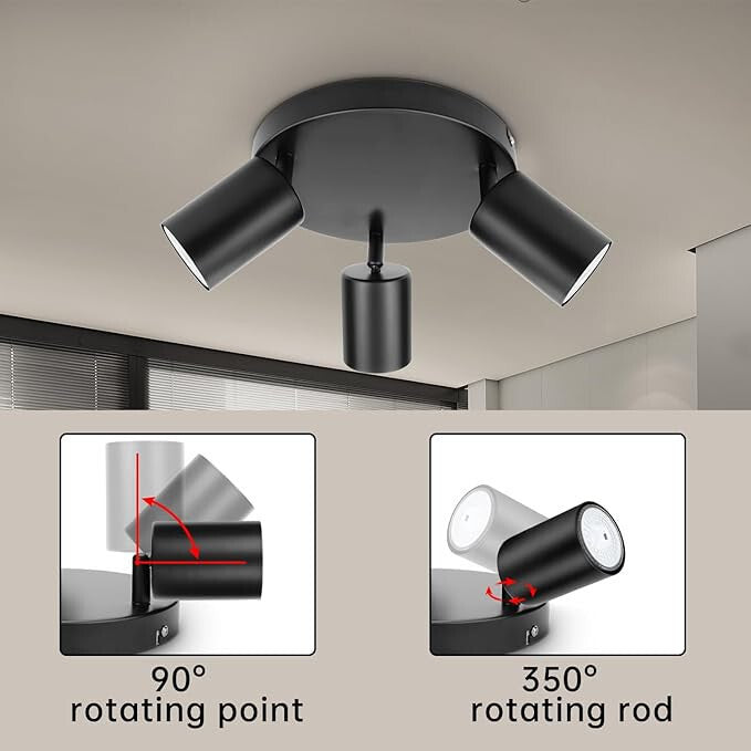Dehobo Mennyezeti Spot Lámpa - 3 Irányú Beltéri Világítás, (Matt Fekete)