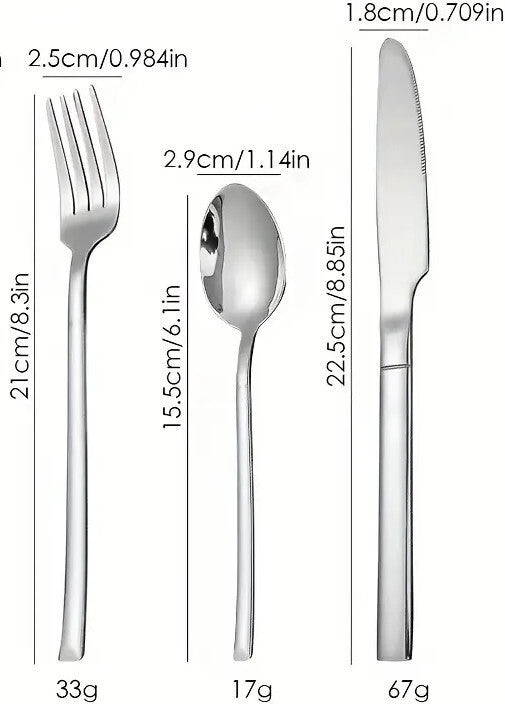 - Sokoldalú felhasználás: Ideális beltéri és kültéri eseményekre, valamint ajándékként is kiváló választás. - Válaszd ezt a stílusos és praktikus evőeszköz készletet, és emeld az étkezési élményt új szintre, miközben időtálló megoldást biztosítasz otthonod számára!
