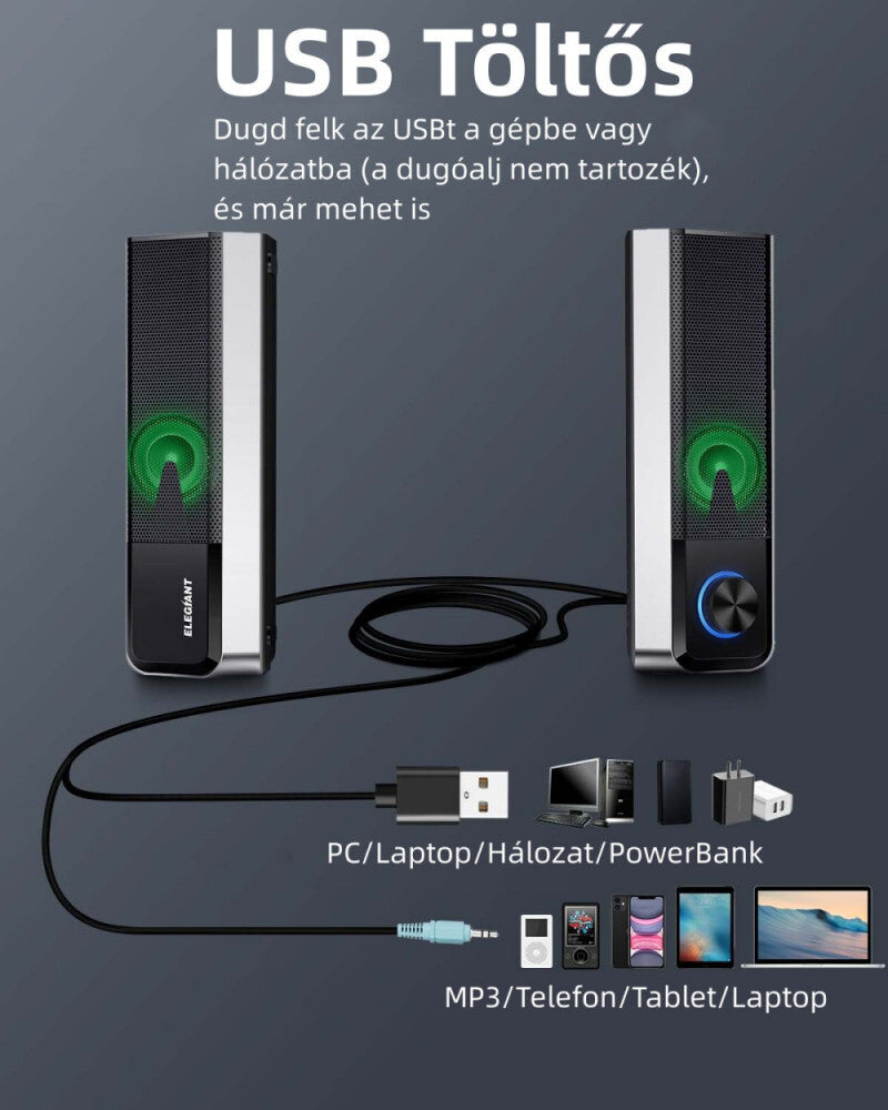 - ELEGIANT SR400 Bluetooth, HiFi Sztereó USB-s PC Hangszórópár 2db/Csomag