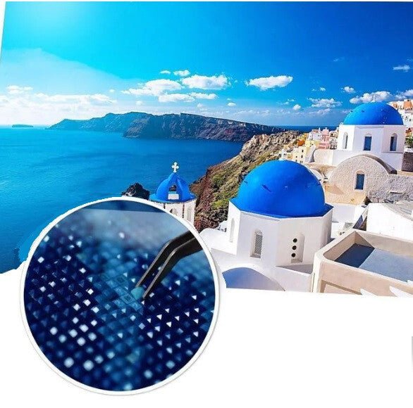- Gyémántfestő Készlet Kék Tengerparti És Görög Dóm Mintával 35x25cm